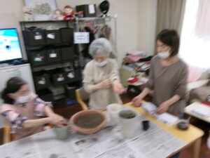 頂いた苗は皆で土の感触を確かめながら、和気あいあいとプランターに植え替えました。